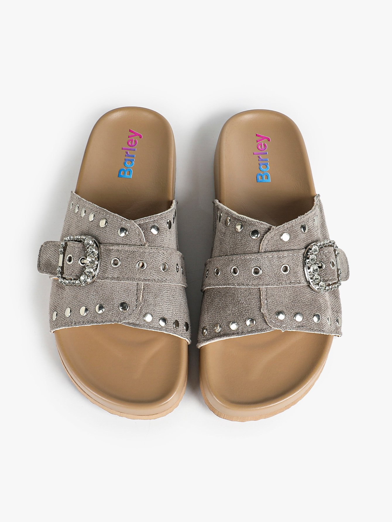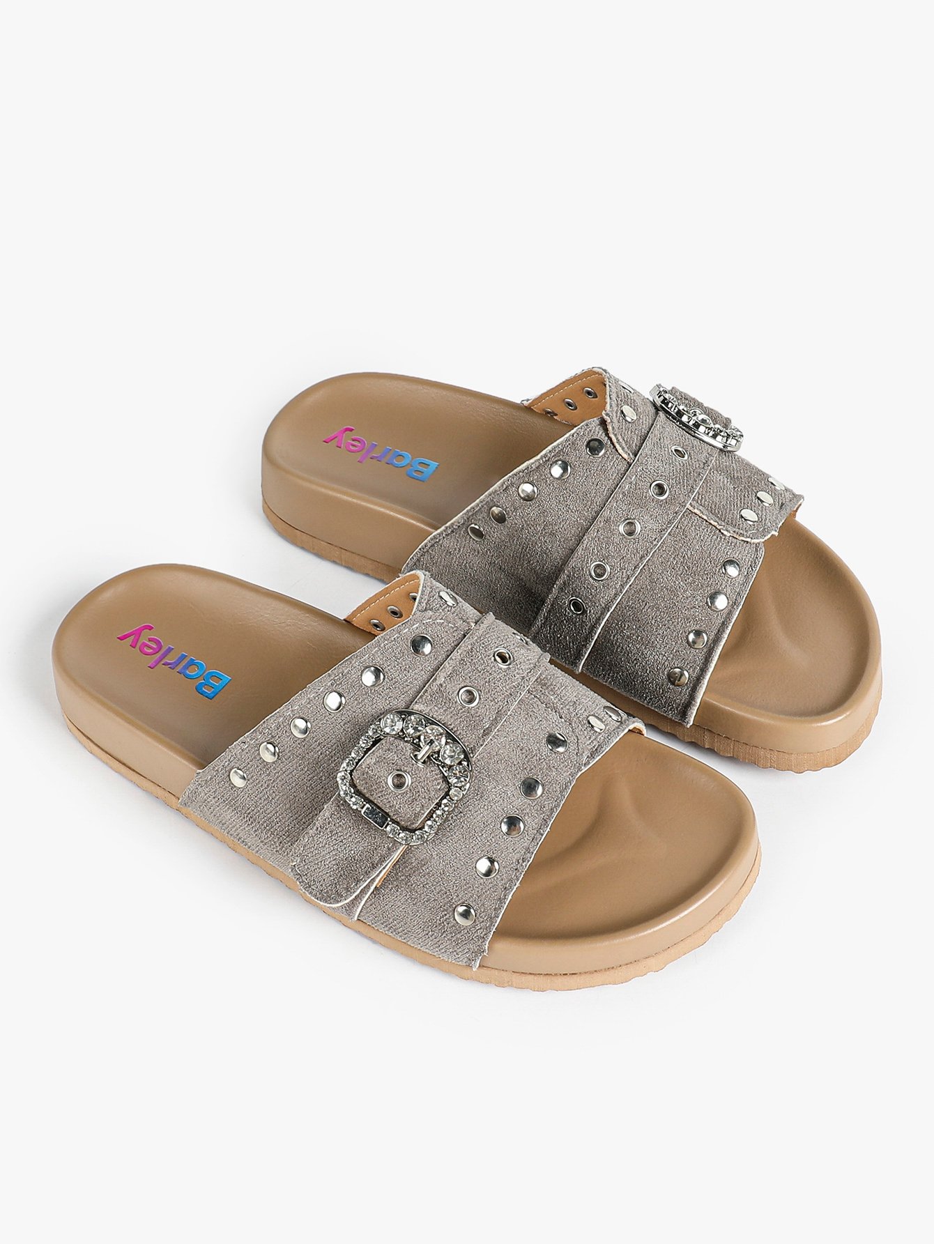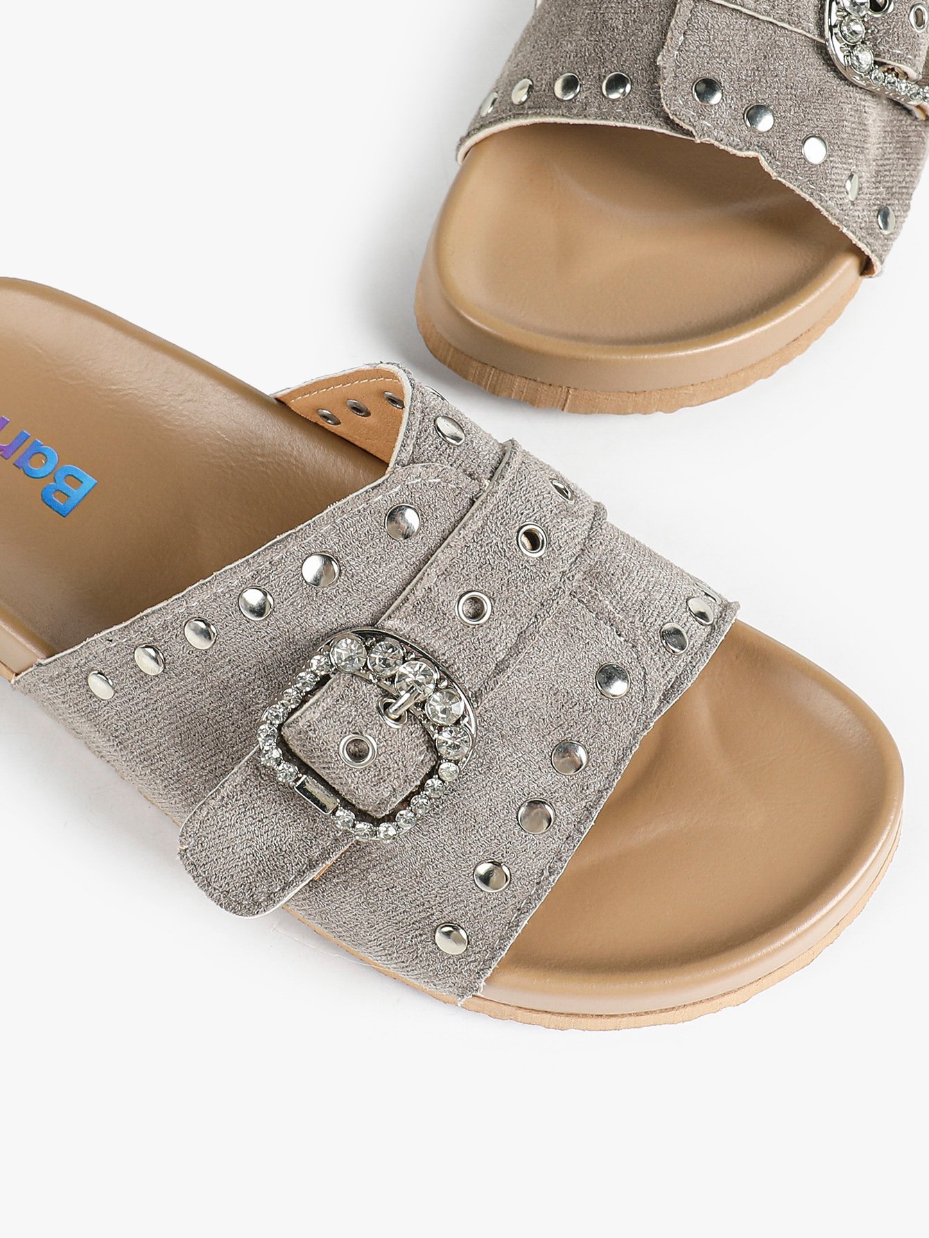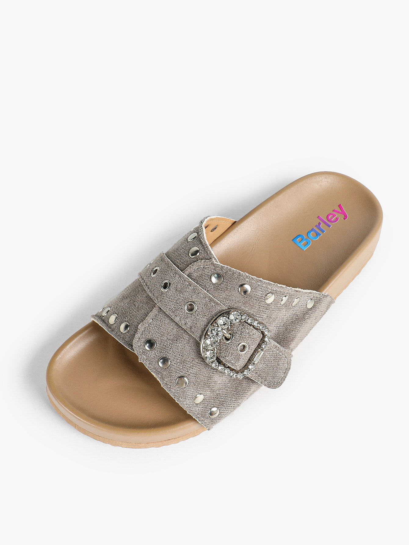 Hardware: Silver-tone buckle encrusted with rhinestones
