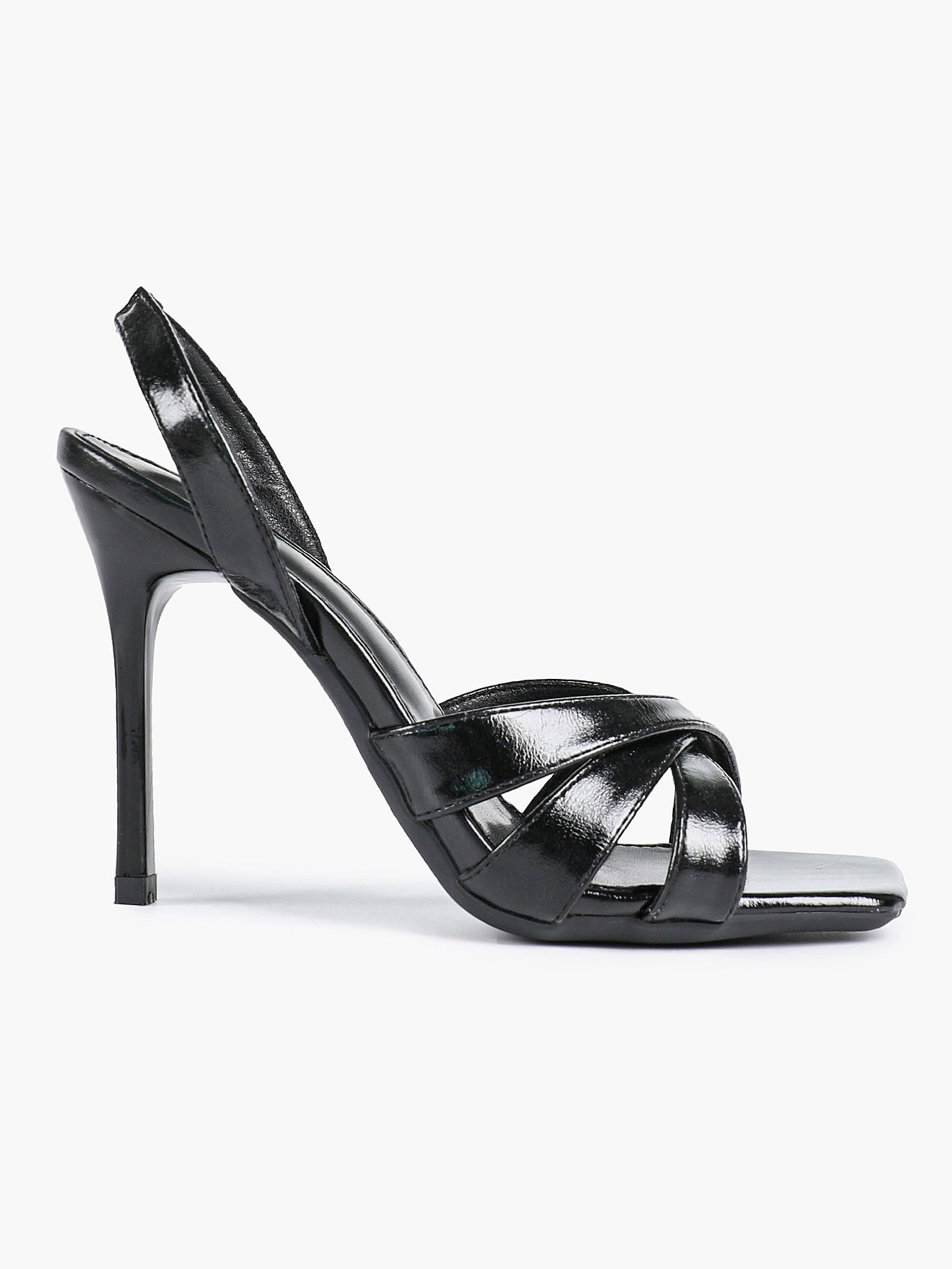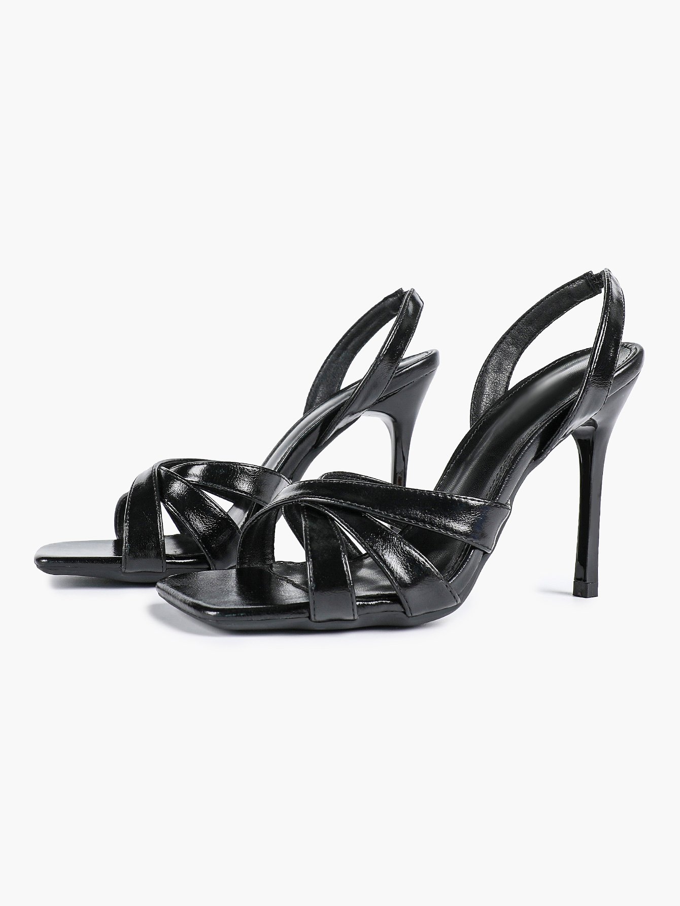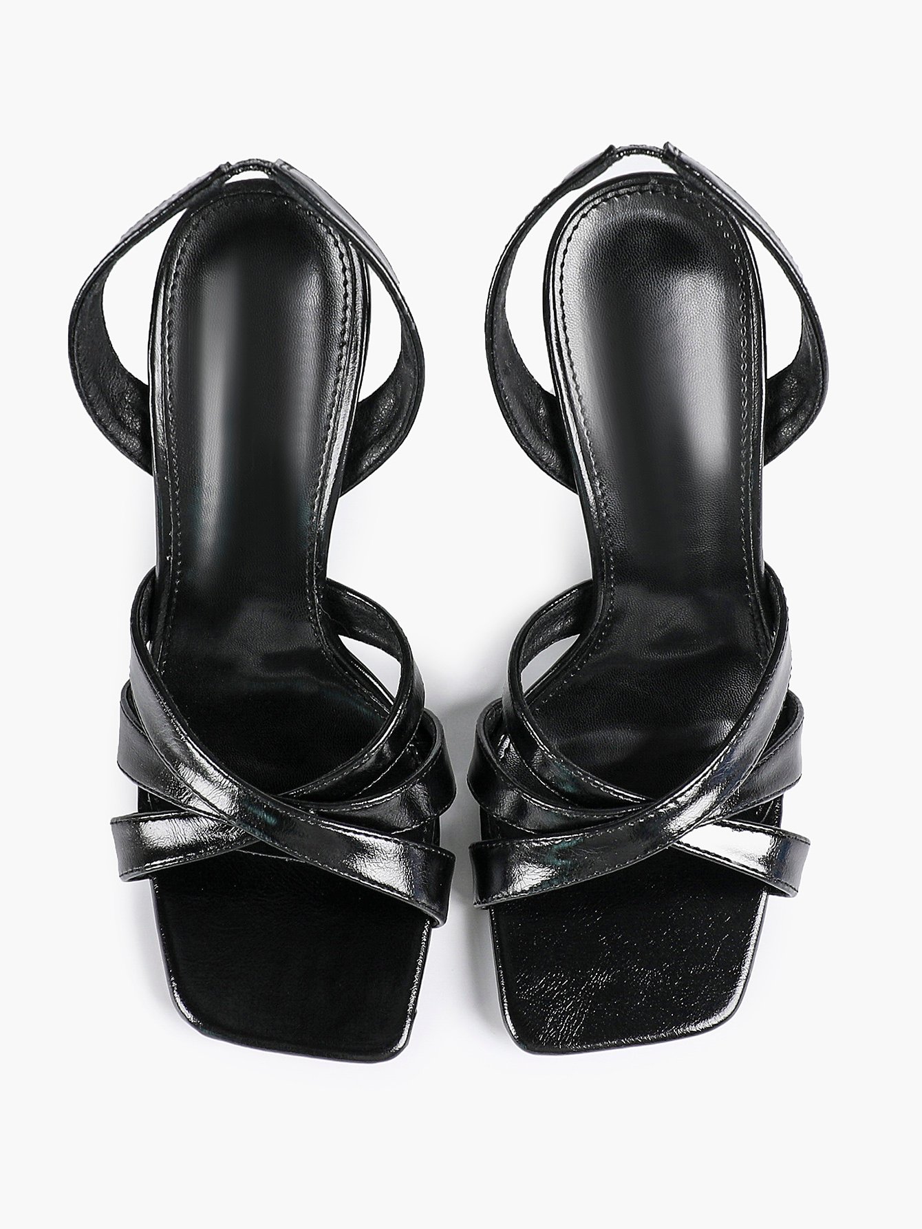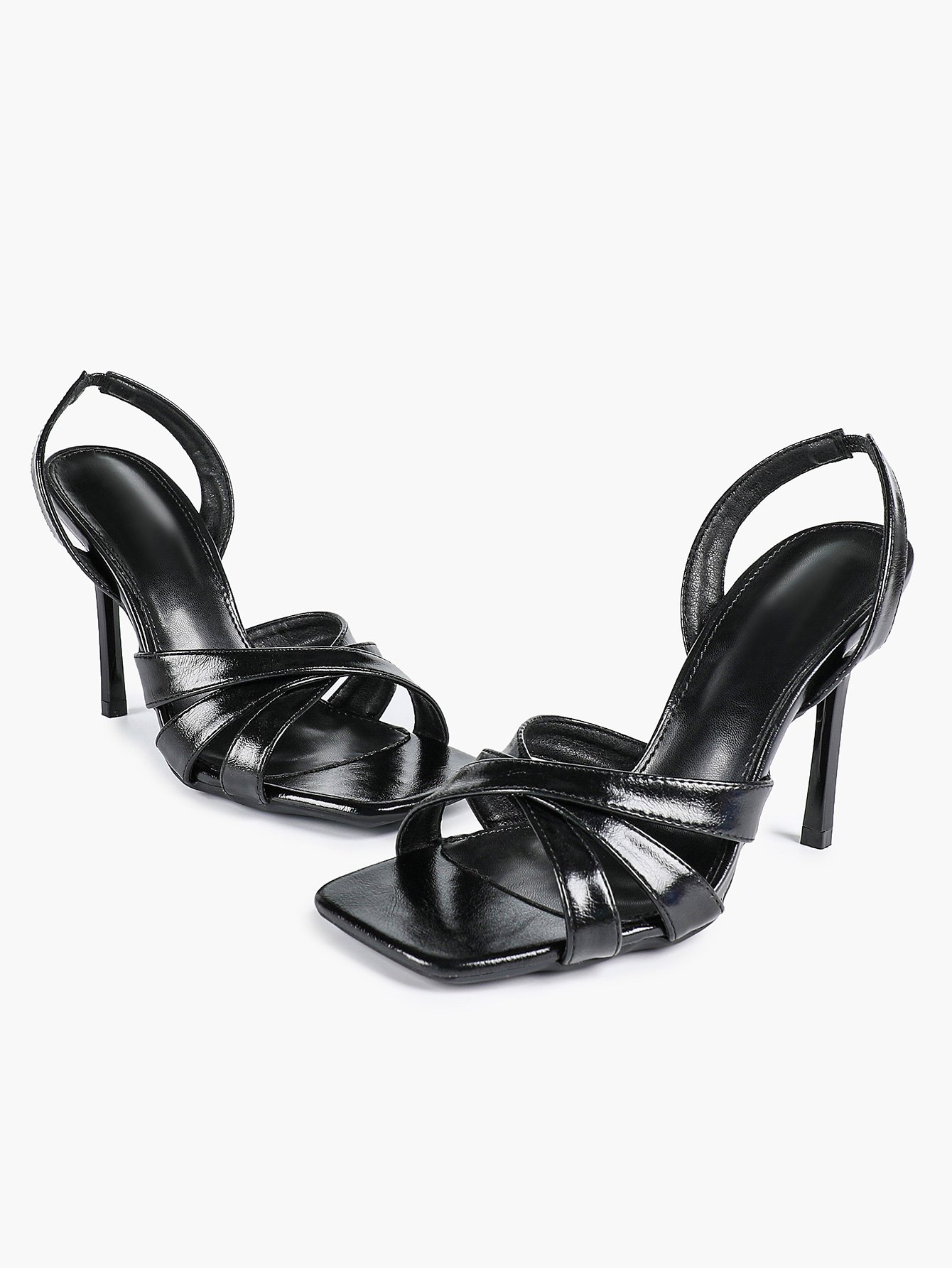 - Style: Elegant slingback stiletto sandals with a square toe and crisscross strap design.