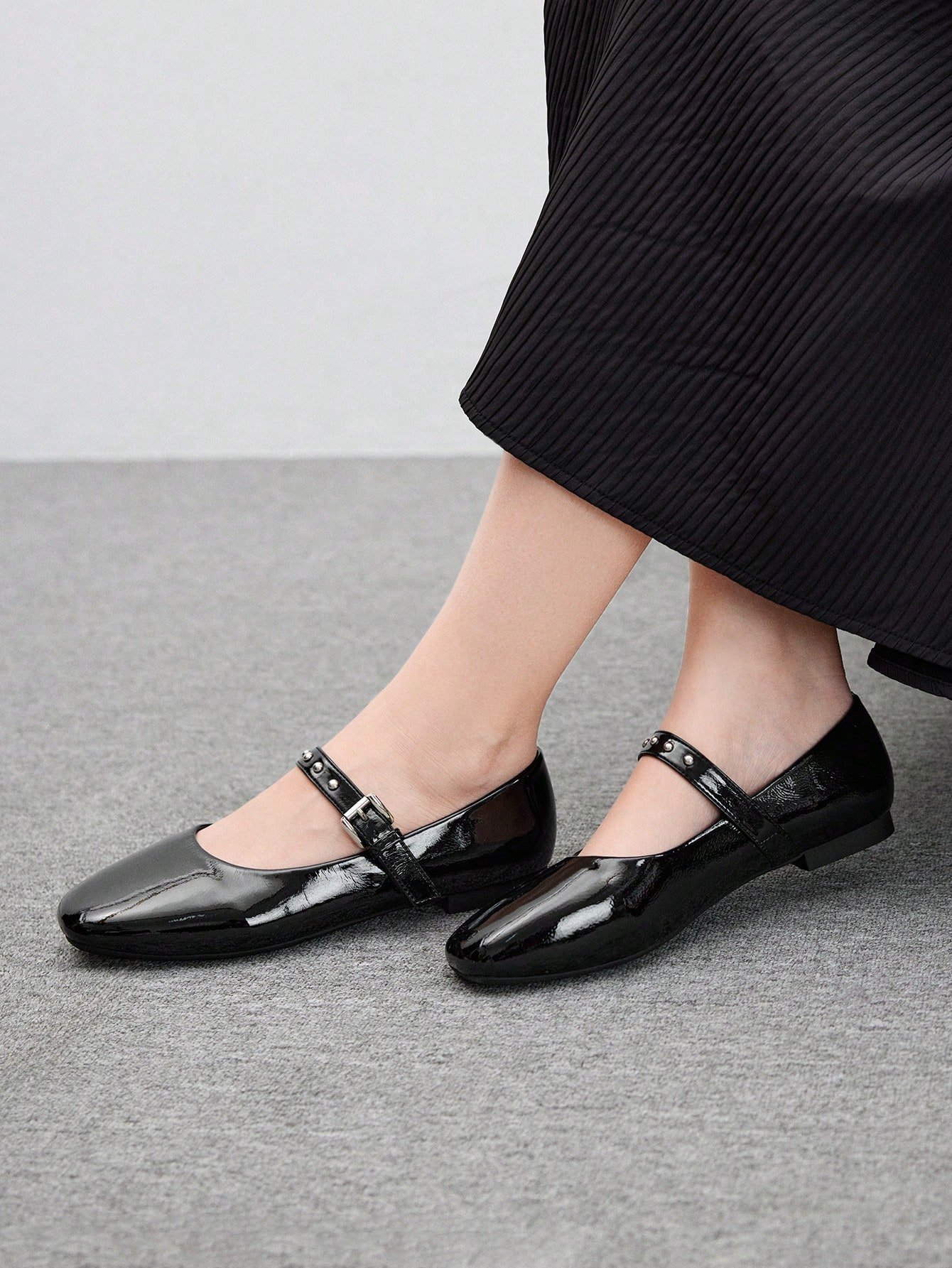 Women’s Commuter Leather Buckle Black Ballet Flats